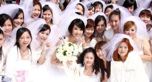 臺(tái)灣名模隋棠身披婚紗亮相街頭宣傳雅芳品牌
